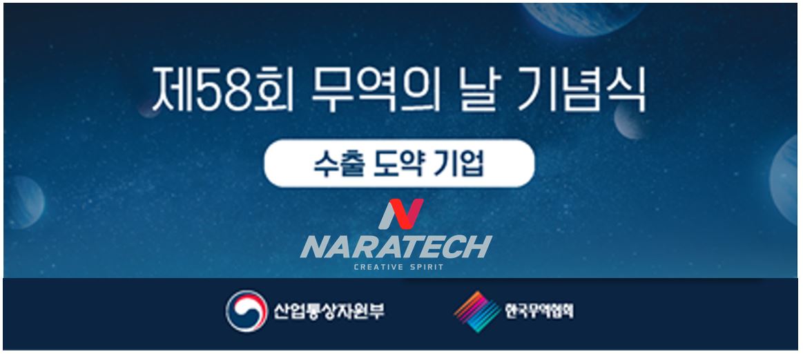 나라테크는 2011년도에 300만불 수출의 탑을 수상하고 2021년도에 3000만불 수출의 탑을 수상하여 10년동안 수출액 10배 증가의 쾌거를 달성하게 되었습니다.